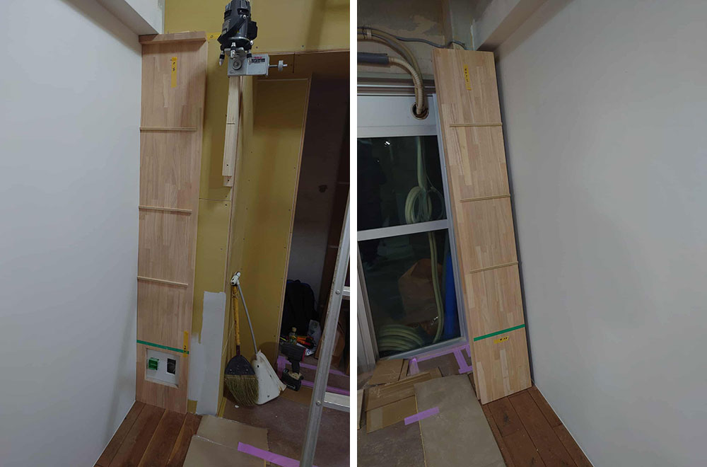 その後ろに棚を造作しました。